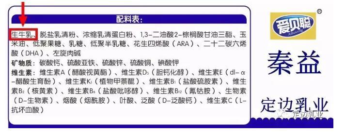 如果配料表中是生牛(羊)乳或脫脂生牛(羊)乳,則一般為一次配料成型的濕法工藝生產(chǎn)的奶粉。如:秦益(愛貝聰)。