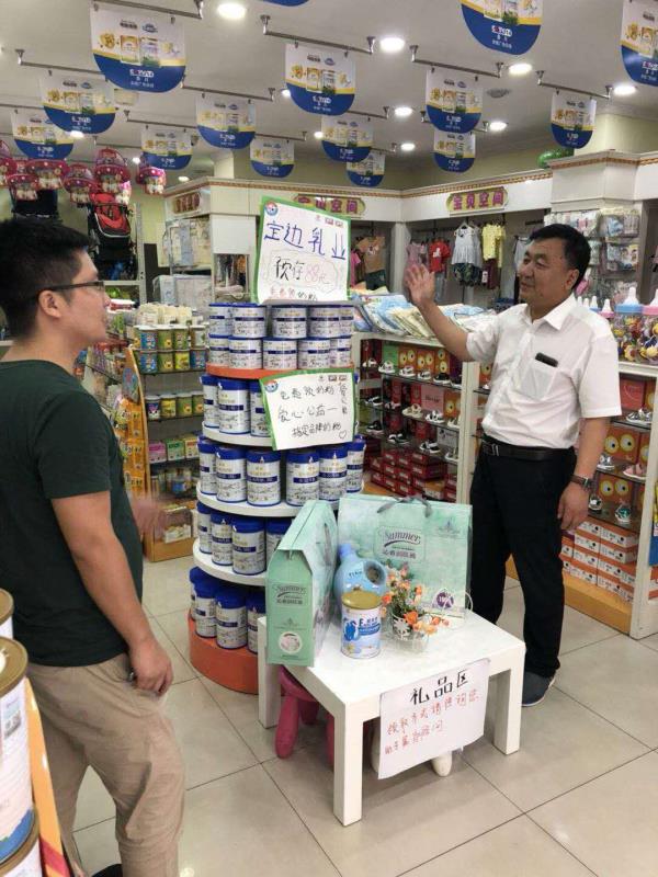 為深入了解當(dāng)下奶粉市場動態(tài)及銷售一線實際情況,近日定邊乳業(yè)黨支部書記侯萬德、營銷總監(jiān)翟躍生,深入我公司銷售一線門店進行現(xiàn)場調(diào)研。在我公司銷售人員的陪同下,侯書記一行冒著高溫先后深入四川、貴州、重慶、山東、河南等地查看定邊乳業(yè)產(chǎn)品經(jīng)營情況。在市場候書記耐心聽取了門面店老板介紹目前市場情況,對我公司產(chǎn)品的意見及建議,并向他們講解了我公司的經(jīng)營及以后的發(fā)展規(guī)劃,使我們的經(jīng)銷商、門面店對我公司產(chǎn)品、未來充滿了決心與信心