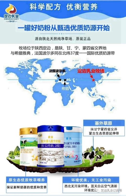 定邊乳業(yè)喜獲殊榮!定邊乳業(yè)是一家集奶牛羊養(yǎng)殖、研發(fā)、生產(chǎn)、加工、銷售為一體的全產(chǎn)業(yè)鏈企業(yè)。至1949年建廠以來,71年如一日,秉承老一輩革命先烈的優(yōu)良作風(fēng)。始終以馬世平董事長“乳品行業(yè)是良心行業(yè)、道德行業(yè)、要做一個有社會責(zé)任心的企業(yè)” 這句話,為辦廠宗旨。以“一切為了孩子、做中國寶寶專屬VIP奶粉、振興國產(chǎn)民族品牌”為己任。嚴(yán)把質(zhì)量關(guān),確保每款產(chǎn)品都是匠心制作。